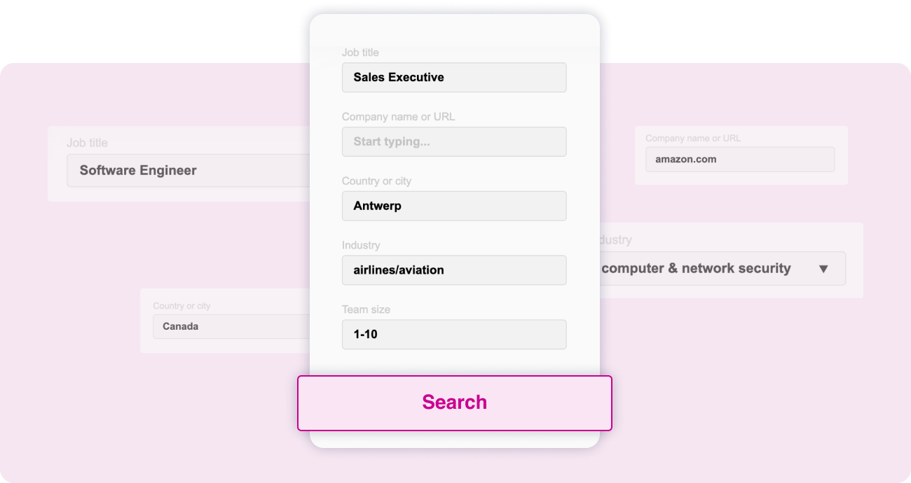 Company name, job title, location, industry and team size are available for now.
